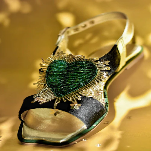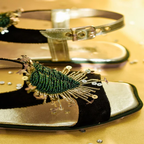 Elevate your style with Lovery Kohatis! Crafted from the finest black micro velvet, this piece features a stunning 3D heart motif embellished with bottle green beads and cut pipes for a touch of elegance. The addition of sequin spray adds a perfect finishing touch. A fusion of modern and traditional, this is a must-have for any fashion lover! Upper:Micro Velvet Bottom: Anti Skid Sheet Sole Please note: Due to the handmade nature of the collection and professional photography lights; colors, and/or patterns may vary slightly from the image shown. Minor differences enhance the beauty and uniqueness of each style.